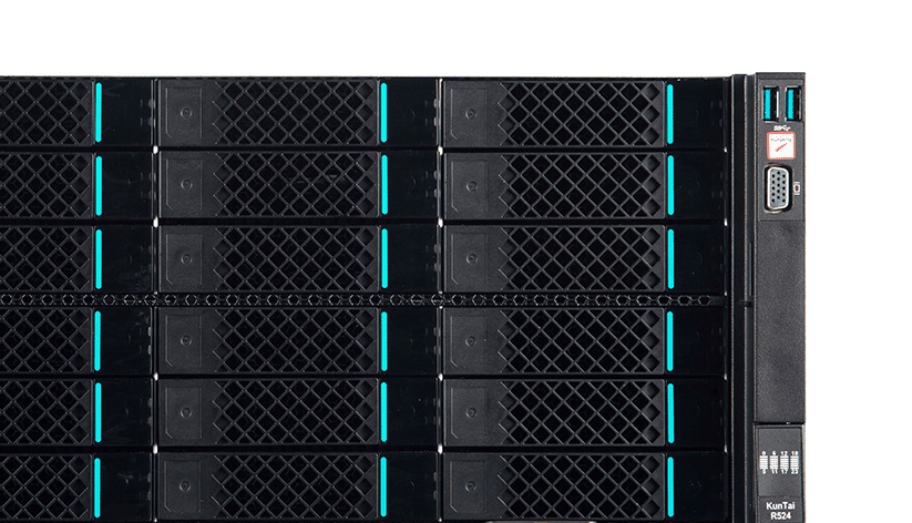 KunTai R524 存储型服务器是雀魂数码基于鲲鹏处理器推出的新一代 ARM数据中心服务器。。。。主要面向存储业务,,,,具有海量存储、、高性能、、、、低功耗以及易扩展的特点,,,,适合为大数据分析、、软件定义存 储等应用场景的工作负载进行髙效加速。。